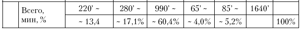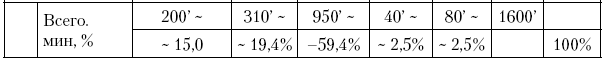 – анаэробные лактатные упражнения – 200 мин (3,5 %),