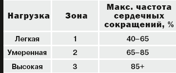 Обратитесь к разделам «Шкала интенсивности нагрузок» и «Целевая частота сердечных сокращений и соответствующие зоны» на с. 97, где вы найдете подробные описания, а здесь я приведу сокращенную таблицу.