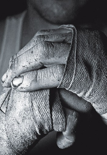 Спарринг. 6-12 раундов по три минуты (после каждого раунда отдых 30 секунд). Костя доводил количество раундов до 12, работая с тремя разными спарринг-партнёрами (вы можете заменить спарринговые отработки работой на тяжёлом мешке).